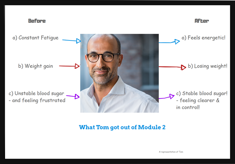 Then, Tom enrolled in our Blood Sugar Mastery Course and dove into Module 2.