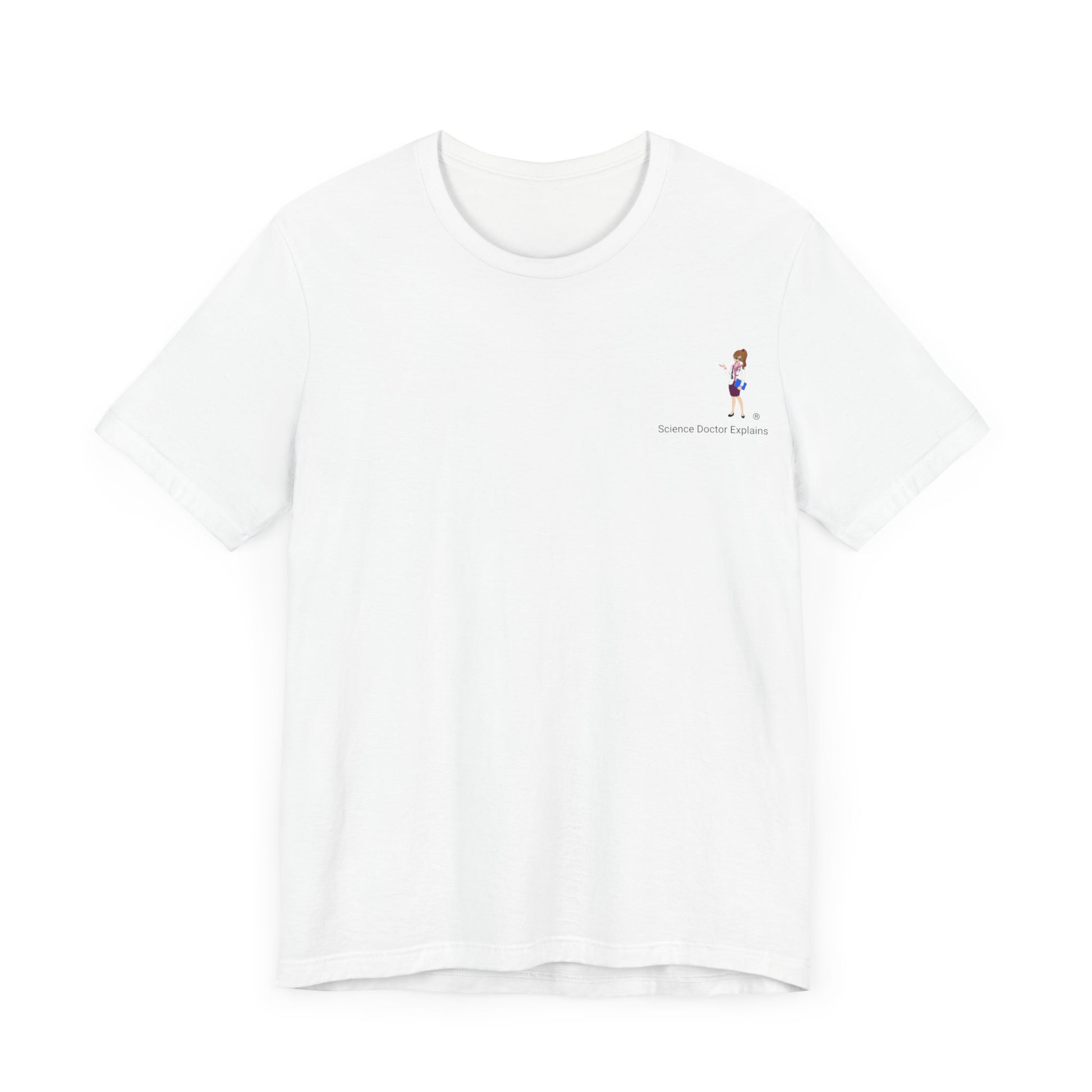 White Unisex Jersey Short Sleeve Tee with Science Doctor Explains